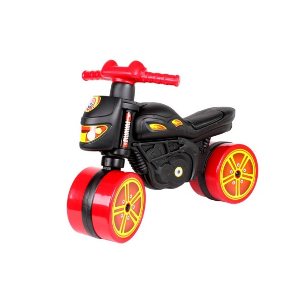 «Міні-байк» - цікава, корисна та якісна іграшка, яка урізноманітнює дозвілля дітей і допоможе їм зробити свої перші впевнені кроки. Іграшковий транспортний засіб «працює» за принципом толокара: дитині потрібно відштовхуватися ніжками, щоб рухатися. Завдяки спеціальному керма, обертається на 360 градусів, міні-байк дуже маневрений, а широкі і надійні колеса роблять іграшковий транспорт стійким. Іграшка покращує координацію рухів. Візуально іграшка схожа на «дорослий» мотоцикл. Це дуже подобається дітям, адже дозволяє спробувати себе в ролі крутих байкерів. Також дитини зацікавлять оригінальні наклейки з зображенням полум'я, якими прикрашена іграшка. «Вогненний» дизайн міні-байка є не тільки стильним, але і універсальним: червоно-чорна колірна гамма вироби прийнятна і для хлопчиків, і для дівчаток. Виготовлений міні-байк з міцної пластмаси високої якості, без запаху.